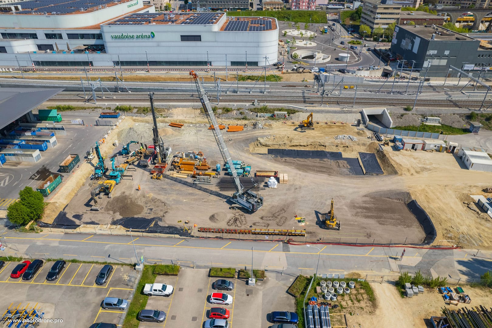 Le projet a fait en 2018 l’objet de deux Concours d’architecture distincts, concours remportés par les bureaux Aeby Perneger & Associés SA à Carouge d’une part et Pont 12 Architectes SA à Lausanne d’autre part. Les travaux ont commencé au printemps 2022. Les premiers immeubles seront terminés en 2024. Les CFF investissent environ 250 millions de francs dans le développement de ce nouveau quartier.